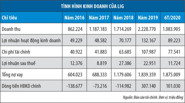 Nếu như năm 2016, khoản phải thu là 868,6 tỷ đồng thì tới 30/6/2020 lên tới 1.687,5 tỷ đồng, tăng 94,3% trong hơn 3 năm. Khoản phải thu chiếm 37% tổng tài sản của Công ty tại thời điểm cuối quý II/2020. LIG có thuyết minh phải thu khách hàng là 952,1 tỷ đồng, nhưng không thuyết minh cụ thể khách hàng nào chiếm trọng số.