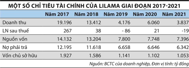 Trong vòng 5 năm trở lại đây, quy mô doanh thu của Lilama thu hẹp từ mức 19.196 tỷ đồng vào năm 2017 xuống còn 3.837 tỷ đồng vào năm 2021; lợi nhuận lao dốc từ 267 tỷ đồng xuống còn âm 19 tỷ đồng. Nguồn vốn cũng giảm 50% sau 5 năm, trong đó chiếm đa phần là nợ phải trả, luôn cao gấp 6 -12 lần vốn chủ sở hữu.