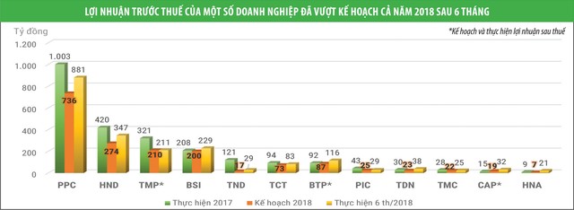 Hoàn thành kế hoạch lợi nhuận cũng là câu chuyện của CTCP Nông sản thực phẩm Yên Bái (CAP), CTCP Đầu tư điện lực 3 (PIC), CTCP Cáp treo Núi Bà Tây Ninh (TCT), CTCP Thủy điện Thác Mơ (TMP), CTCP Nhiệt điện Hải Phòng (HND)… ngay trong quý II/2018.