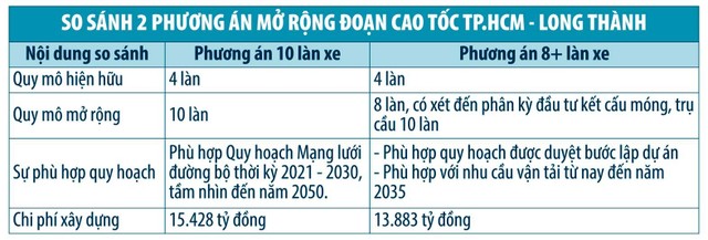 Tại Văn bản số 2024/BC-VEC, VEC cho biết đã nghiên cứu mở rộng đoạn tuyến lên 10 làn xe, nhưng ngoài việc phát sinh thêm 1.545 tỷ đồng so với phương án 8+, phương án này còn có hiệu quả đầu tư không cao do nhu cầu sử dụng 10 làn xe trong giai đoạn đầu hạn chế.