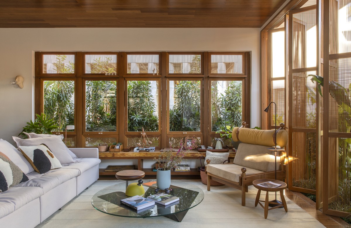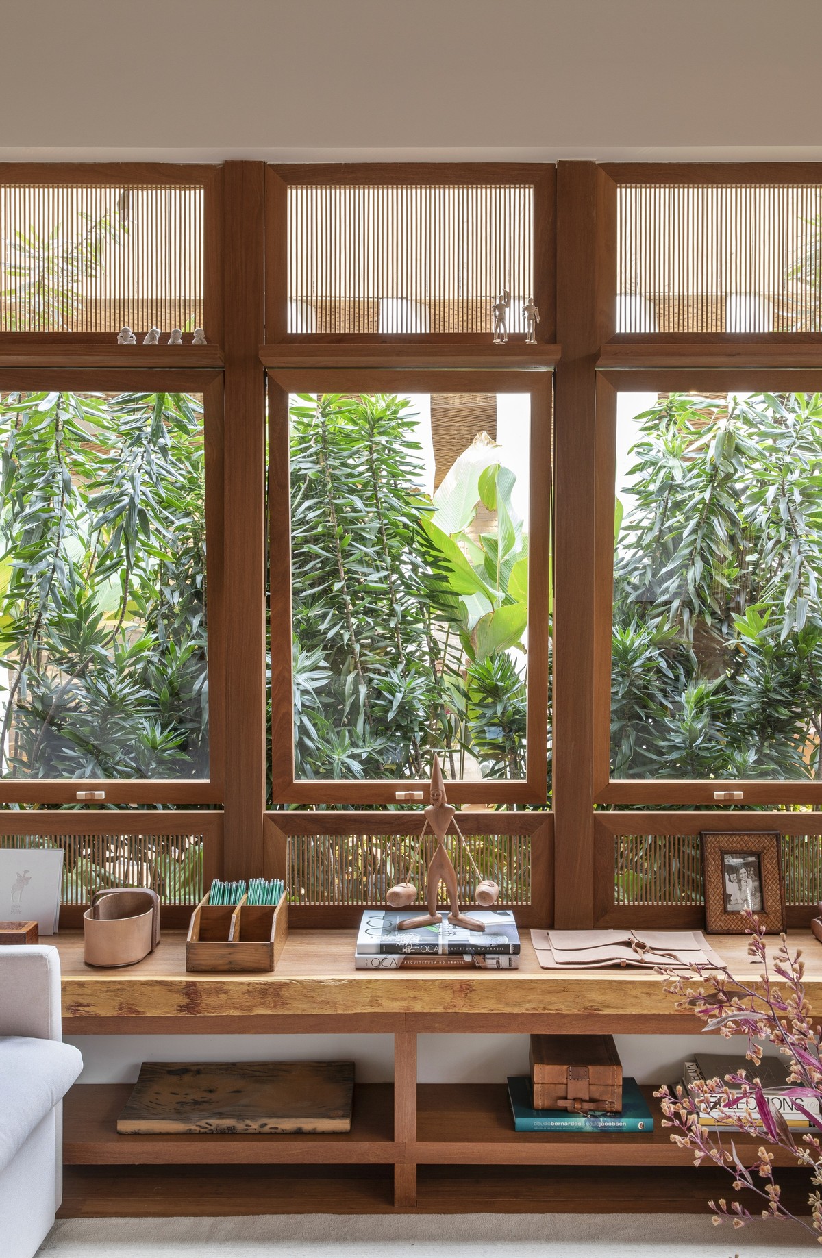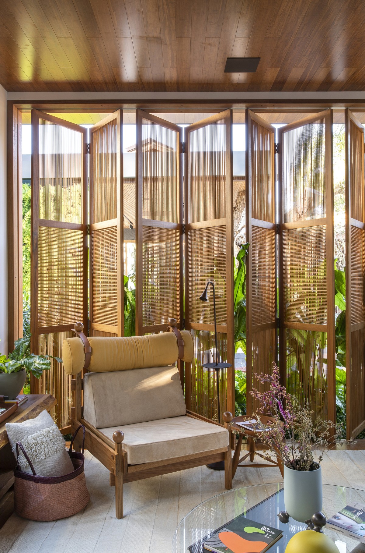 Các khung gỗ đan xen giúp ánh sáng tự nhiên chan hòa trong căn phòng nhưng không hề chói chang.