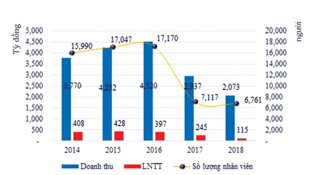 Lợi nhuận giảm, các hệ số về khả năng sinh lời trên tổng tài sản (ROA) và vốn chủ sở hữu (ROE) lần lượt chỉ đạt 3,3% và 5,4%, bằng 25% so với giai đoạn 2015-2016 khi tình hình kinh doanh còn thuận lợi. Mức cổ tức theo đó cũng giảm từ 20-25% xuống 15% chi trả cho năm 2017 và kế hoạch 2018 giảm tiếp xuống 10%. Cùng với đó, số lao động tiếp tục giảm thêm 356 người xuống 6.761 người, bằng 40% thời điểm cuối năm 2015.
