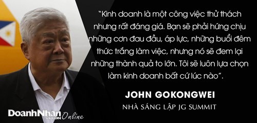 Ông trùm người Phillipines John Gokongwei đã đưa ra một vài lời khuyên dành cho các doanh nhân trên toàn thế giới về tầm quan trọng của lòng bền bỉ đã giúp ông xây dựng một trong những tập đoàn kinh tế lớn nhất Phillipines là JG Summit:
