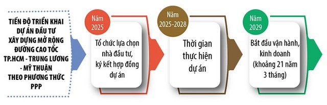 Được biết, hiện công tác chuẩn bị đầu tư Dự án Đầu tư xây dựng mở rộng đường cao tốc TP.HCM - Trung Lương - Mỹ Thuận theo phương thức PPP đang đi đến giai đoạn cuối cùng. Vào cuối tuần trước, Ban Quản lý dự án 7 - đơn vị được Bộ Xây dựng giao nhiệm vụ đại diện cơ quan Nhà nước có thẩm quyền đã có tờ trình đề nghị Cục Đường bộ Việt Nam (cơ quan chuyên môn về xây dựng) thẩm định Báo cáo nghiên cứu khả thi Dự án đầu tư xây dựng mở rộng đường cao tốc TP.HCM - Trung Lương - Mỹ Thuận theo phương thức PPP, loại hợp đồng BOT.