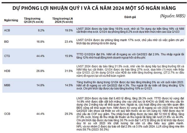 Trao đổi với Báo Đầu tư Chứng khoán, một lãnh đạo cao cấp Công ty Chứng khoán MB (MBS) cho biết đã có những dữ liệu ước tính kết quả kinh doanh quý I và cả năm 2024 của nhiều ngành, bao gồm cả ngân hàng.
