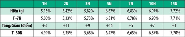 Trên thị trường thứ cấp, NĐT nước ngoài bán ròng tuần thứ ba liên tiếp với khối lượng đạt 98 tỷ đồng, giảm mạnh so với khối lượng bán ròng hơn 1.300 tỷ đồng ở tuần trước. Lợi suất tuần này tăng trên tất cả các kỳ hạn (xem bảng).
