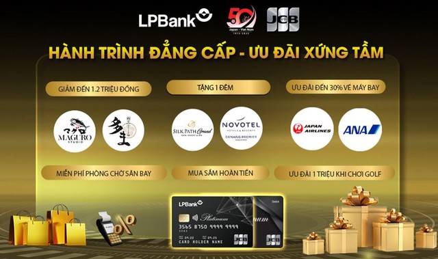 Ngoài ra, đặc quyền dành riêng cho chủ thẻ LPBank JCB Platinum với ưu đãi ẩm thực, du lịch, mua sắm hoàn tiền, tận hưởng những dịch vụ golf đẳng cấp, miễn phí phòng chờ sân bay hạng thương gia tại các địa điểm trong nước và nước ngoài… giúp hành trình sử dụng dịch vụ thẻ LPBank JCB của khách hàng trọn vẹn và đẳng cấp nhất.