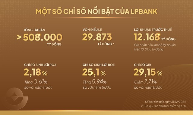 Năm 2024 đánh dấu một năm tăng tốc mạnh mẽ của LPBank với những kết quả kinh doanh ấn tượng, thể hiện tầm nhìn chiến lược đột phá và khả năng thích ứng linh hoạt trong bối cảnh kinh tế đầy thách thức. Báo cáo tài chính hợp nhất sau kiểm toán năm 2024 vừa công bố của ngân hàng này không chỉ cho thấy sự tăng trưởng về quy mô, mà còn đặc biệt nổi bật ở hiệu quả sinh lời và khả năng quản trị chi phí, khẳng định vị thế trong nhóm các ngân hàng có tổng tài sản lớn nhất ngành.
