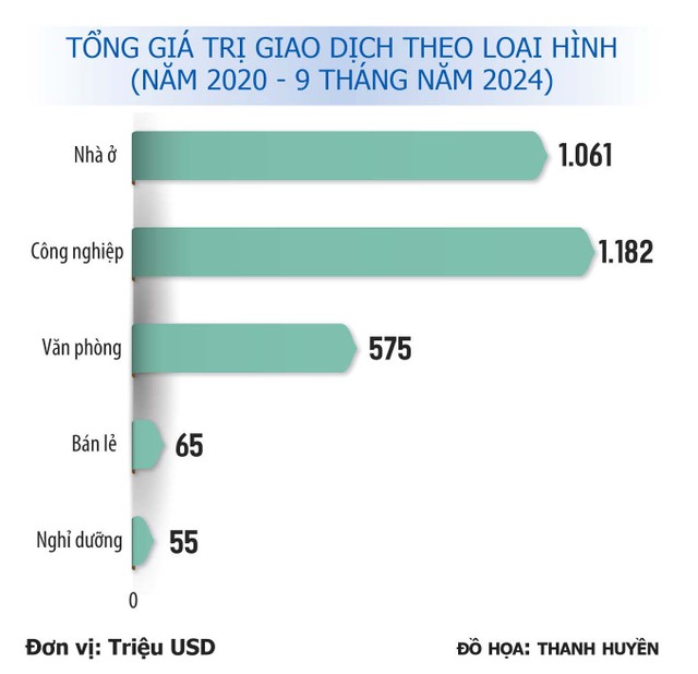 Cũng trong tháng 5/2024, VNG Corporation và ST Telemedia Global Data Centres công bố hợp tác về xây dựng và vận hành các dự án trung tâm dữ liệu theo tiêu chuẩn quốc tế tại TP.HCM. Tháng 7/2024, Daiwa House Logistics Trust hoàn tất việc mua lại Dự án D Project Tan Duc 2 tại Long An, với mức giá là 26,5 triệu USD, đánh dấu cột mốc lần đầu tiên quỹ tín thác này sở hữu bất động sản tại Việt Nam. Ngoài ra, vào tháng 8/2023, Lineage - một trong những quỹ tín thác bất động sản (REIT) công nghiệp, hoàn tất thỏa thuận liên doanh với đơn vị vận hành kho lạnh SK Logistics để khai thác 2 dự án kho lạnh tại Hà Nội và Hưng Yên. Các cơ sở kho lạnh này phục vụ đa dạng đối tượng khách hàng, bao gồm các chuỗi siêu thị cung cấp thực phẩm đến với các hộ gia đình tại địa phương.