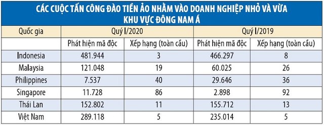 Báo cáo mới nhất của Kaspersky cũng cho thấy, chỉ trong nửa đầu năm 2020, đã có hơn 500.000 cuộc tấn công vào máy tính của doanh nghiệp nhỏ và vừa tại khu vực Đông Nam Á. Đặc biệt, Việt Nam đứng thứ 8 trong các quốc gia có số vụ tấn công bằng mã độc nhiều nhất thế giới.