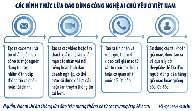 Chúng tôi chỉ là số ít may mắn “thoát nạn”. Theo Ngô Minh Hiếu, chuyên gia an ninh mạng tại Trung tâm Giám sát và An toàn không gian mạng quốc gia (Bộ Thông tin và Truyền thông), Trưởng nhóm Dự án chống lừa đảo trên mạng, lừa đảo dùng công nghệ AI được tội phạm quốc tế áp dụng từ khoảng 3 năm trở lại đây.