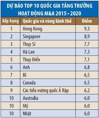 Theo khảo sát của Baker & McKenzie, hoạt động M&A toàn cầu sẽ tăng lên mức 2.700 tỷ USD năm 2015, trước khi đạt tới 3.000 tỷ USD năm 2016 và 3.400 tỷ USD năm 2017.