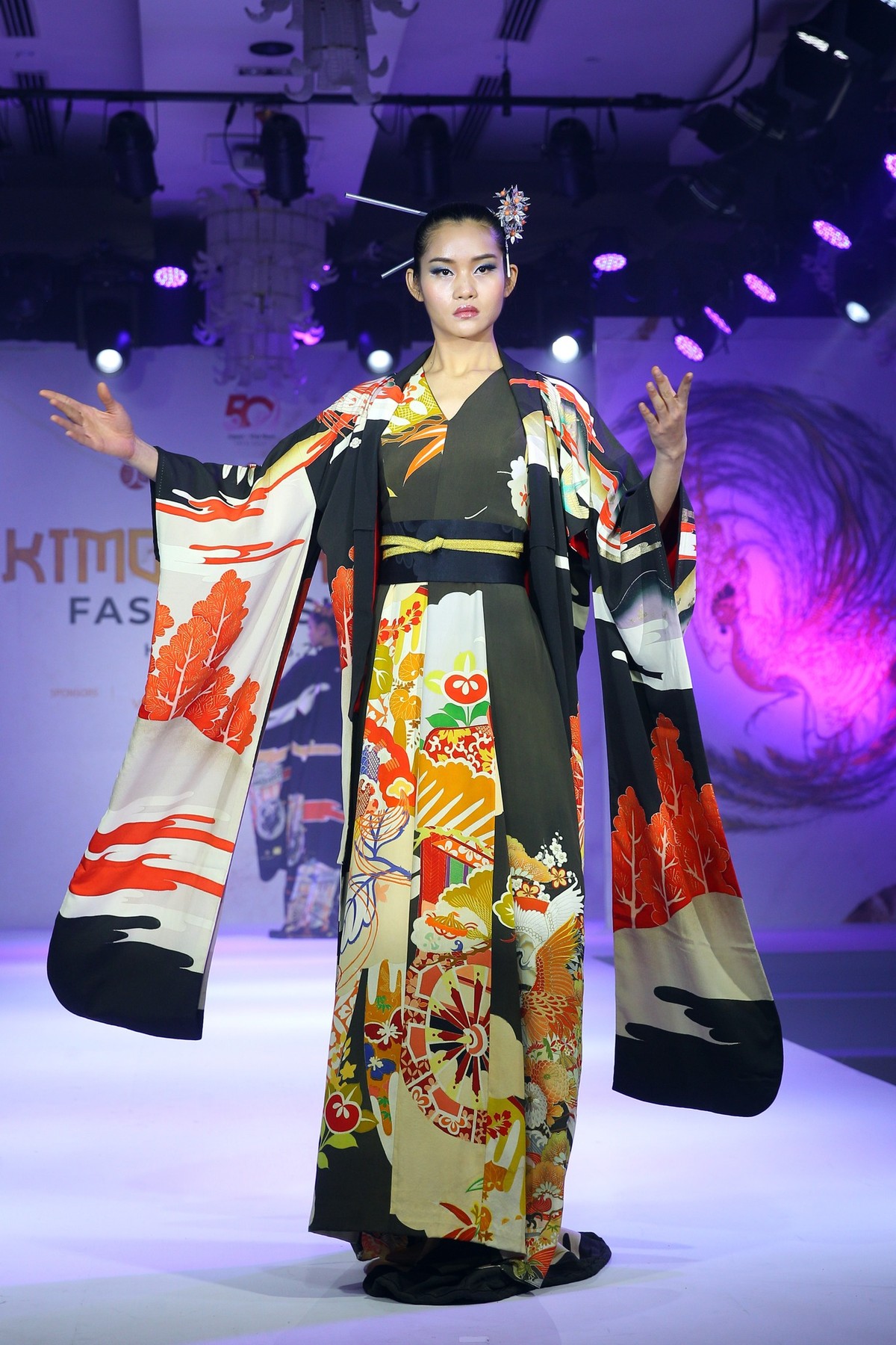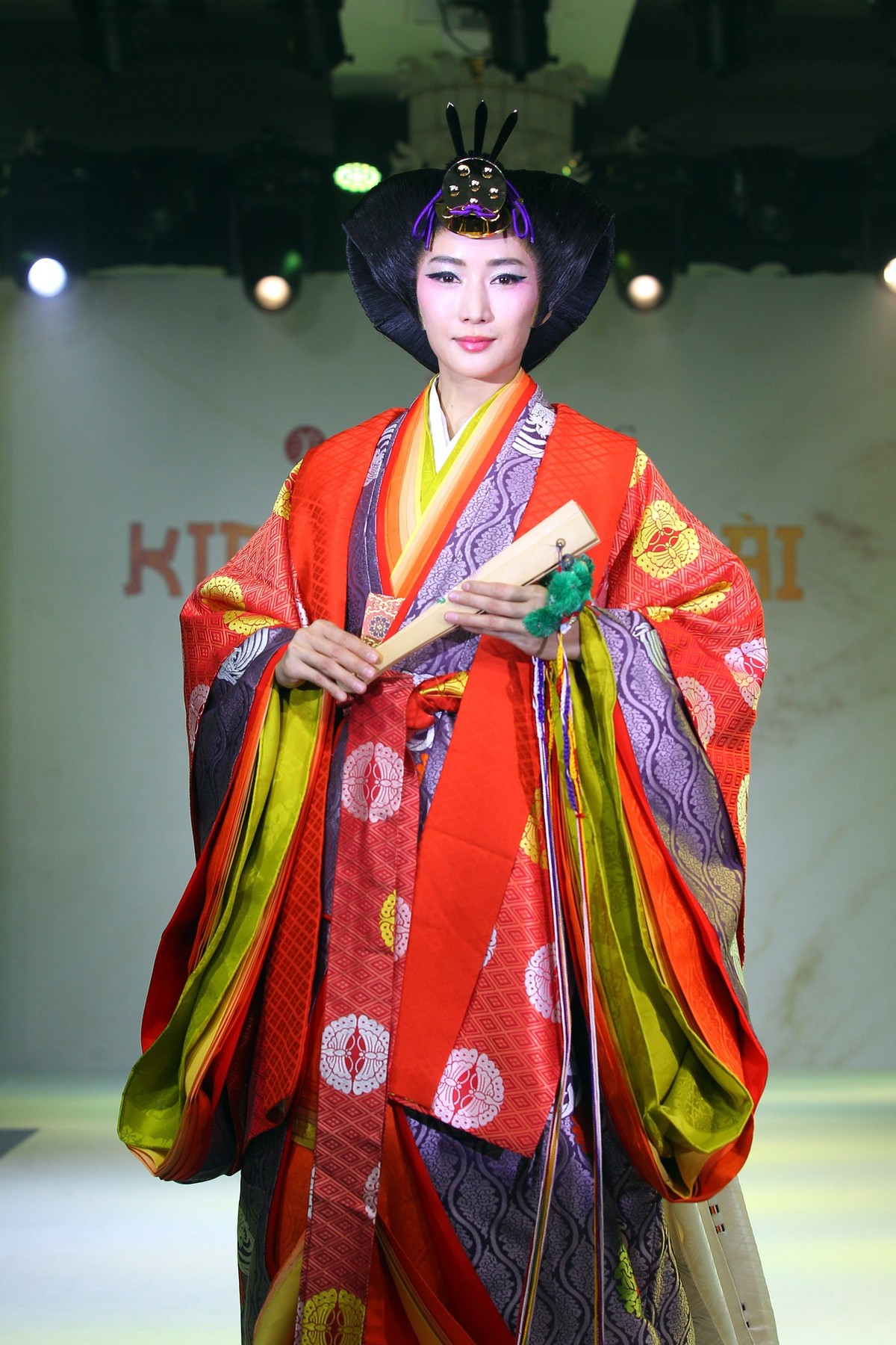 Tại show diễn, khán giả đã không ngớt lời cảm thán khi được xem người mẫu trình diễn trang phục truyền thống Jùnihitoe có tuổi đời hơn 1 ngàn năm tuổi, đang được Hoàng gia Nhật bản lưu giữ.
