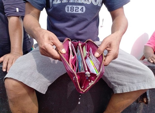 Nhân viên cứu hộ vớt được một chiếc ví nghi của hành khách máy bay. Hiện chưa rõ số phận các hành khách.
