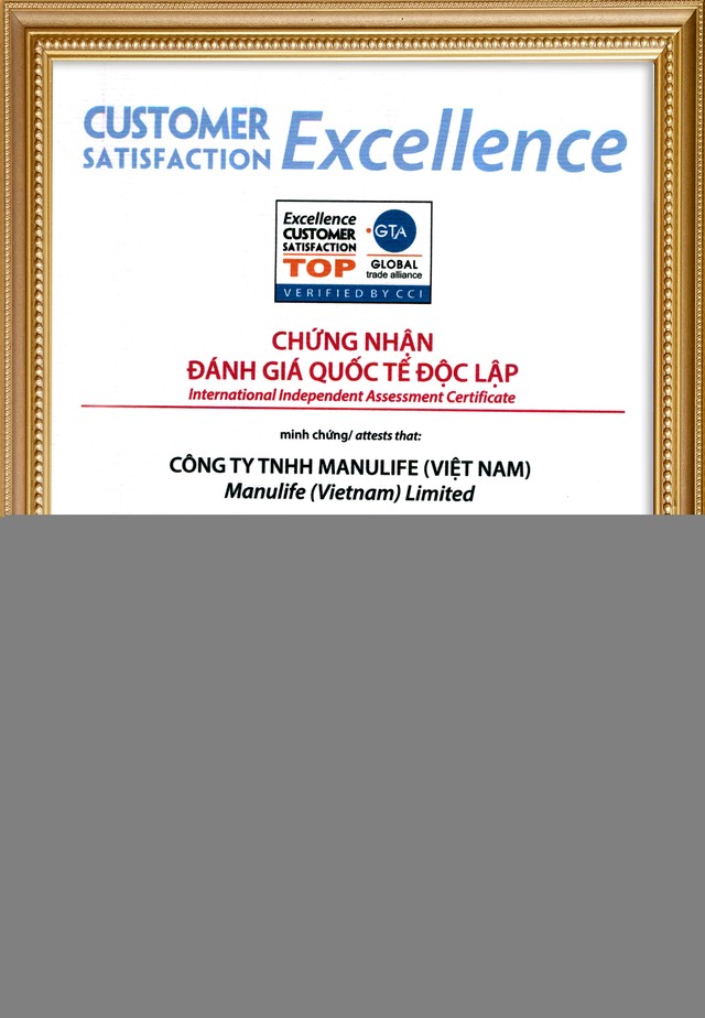 Đây là chứng nhận theo chuẩn CSI:2017 – (Customer Satisfaction Index) có giá trị toàn cầu trong lĩnh vực bảo hiểm nhân thọ, được Tổ chức Liên kết Thương mại Toàn cầu Global GTA (Vương Quốc Anh) công nhận và Tổ chức Chứng nhận Quốc tế InterConformity (CHLB Đức) giám sát chất lượng. Trước đó, Manulife cũng được khách hàng bình chọn là “Thương hiệu Gia đình tin dùng năm 2017”.