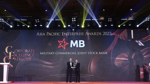 Nối tiếp các năm 2020, 2021 và 2022, năm nay, trong khuôn khổ giải thưởng Asia Pacific Enterprise Awards (APEA), MB tiếp tục được trao giải “Corporate Excellence Award” - Doanh nghiệp xuất sắc châu Á nhờ duy trì thực hiện tốt các mục tiêu kinh doanh theo kế hoạch đề ra, tăng trưởng ổn định và không ngừng mang đến những trải nghiệm thuận tiện nhất cho khách hàng.