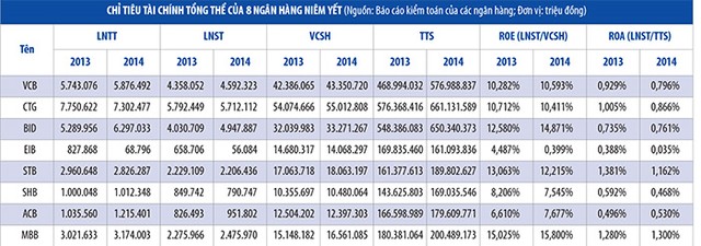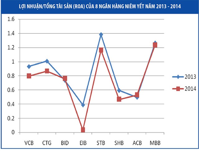 Năm 2014, MBB vượt qua chính mình, giữ vị trí dẫn đầu về chỉ tiệu hiệu quả sinh lời trên vốn trong khối 8 ngân hàng niêm yết - những ngân hàng được đánh giá là minh bạch và hoạt động hiệu quả nhất ngành. Cụ thể, năm 2014, ROE của MBB 15,8%, cao nhất ngành ngân hàng, trong khi vị trí thứ hai không còn là STB mà của BID với 14,871%. Chỉ tiêu ROA, MBB cũng dẫn đầu toàn khối, với 1,3%, trong khi vị trí thứ hai thuộc về STB với 1,162%.