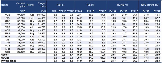 Thị trường chứng khoán đang trong đà hưng phấn và ở nhiều khía cạnh cho thấy tâm lý hưng phấn thái quá, ở đó nhiều giá trị cơ bản bị bỏ quên và nhiều cổ phiếu bị đầu cơ quá đà. Tuy nhiên, như bao lần trước, rồi thị trường sẽ tìm về những giá trị cơ bản nhất. Vẫn còn đó những khó khăn phía trước với hoạt động kinh doanh của ngành ngân hàng, nhưng với việc giá các cổ phiếu ngành này đã giảm khá nhiều từ đỉnh, hiện nhóm ngân hàng đang xuất hiện nhiều cơ hội đầu tư hấp dẫn.