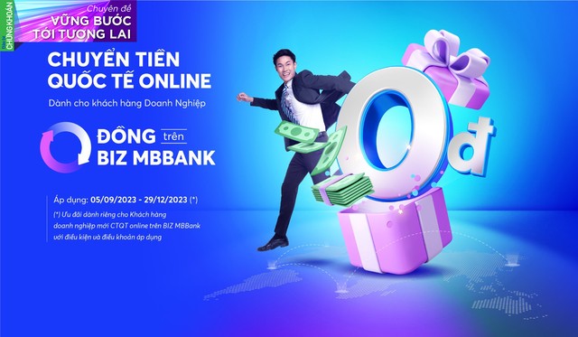 Từ ngày 5/9/2023 đến ngày 29/12/2023, các khách hàng doanh nghiệp có quy mô doanh thu từ 1.000 tỷ đồng trở xuống và mới sử dụng dịch vụ chuyển tiền quốc tế online trên nền tảng ngân hàng số BIZ MBBank sẽ được miễn phí chuyển tiền và điện phí cho tới 30/9/2024.