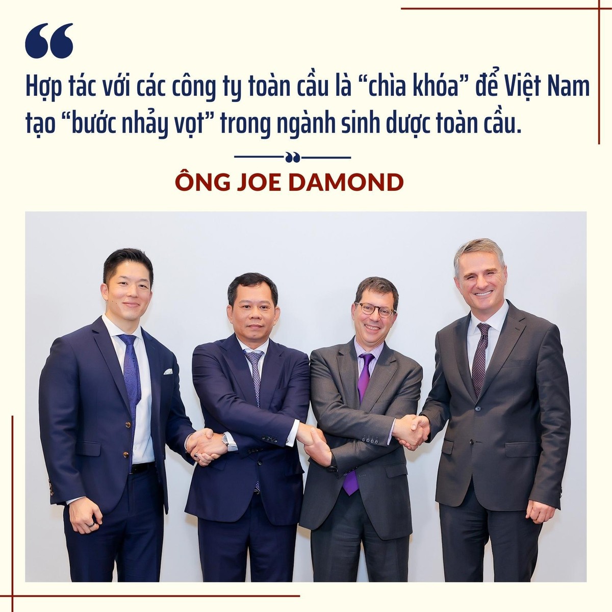 Việt Nam đã chứng minh cho thế giới thấy rằng dù đi sau nhưng đất nước vẫn có thể thành công trong nhiều lĩnh vực khác trên phạm vi toàn cầu. Việt Nam có một lực lượng dân số năng động, sáng tạo, có học vấn cao, cũng như đạo đức làm việc đáng kinh ngạc. Đây là những nền tảng để thành công ngay cả trong một ngành cạnh tranh và phát triển nhanh chóng như sinh dược.