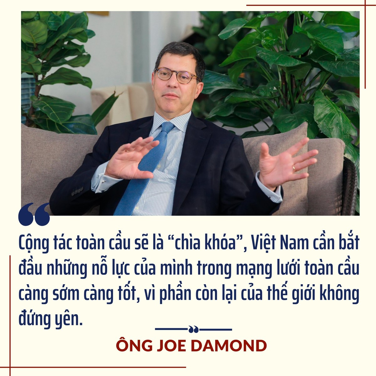 Sự thành công của Việt Nam vừa qua trên thị trường toàn cầu được thực hiện bởi trí tuệ, sự sáng tạo và tinh thần đổi mới đáng kể của người dân Việt Nam. Tất cả đã thuyết phục tôi rằng Việt Nam có thể thành công.
