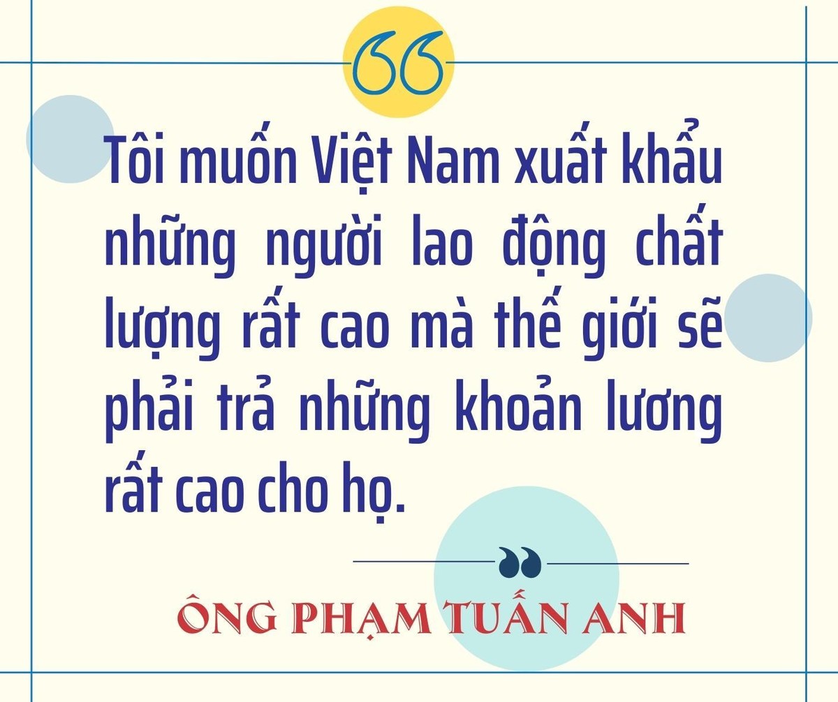 Đây cũng là xuất khẩu lao động nhưng không phải xuất khẩu lao động như trước đây chúng ta làm với lao động phổ thông chuyên môn thấp. Tôi muốn xuất khẩu những người lao động chất lượng rất cao mà thế giới sẽ phải trả những khoản lương rất cao cho họ.