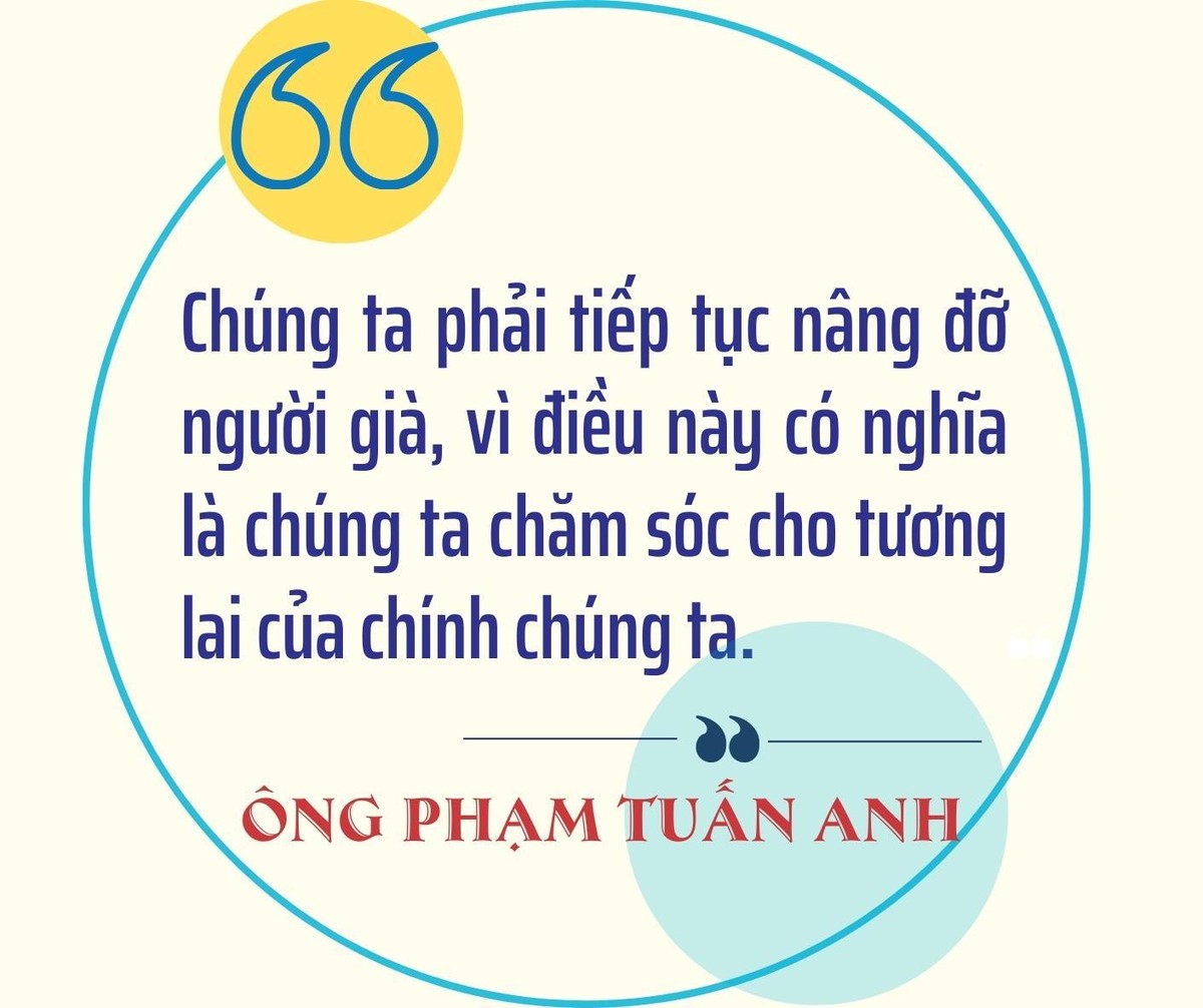 Dường như lúc người già đến tuổi nghỉ hưu là xã hội chúng ta coi như hết trách nhiệm với họ. Chúng ta phải tiếp tục nâng đỡ người già, vì điều này có nghĩa là chúng ta chăm sóc cho tương lai của chính chúng ta. Như vậy, người già không phải là quá khứ. Người già là tương lai, trẻ em cũng là tương lai. Cả hai đối tượng đó phải được chăm sóc tốt.