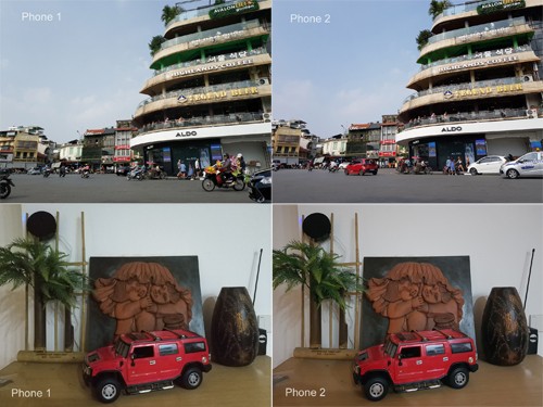 Ở khung hình thứ nhất, với điều kiện đủ sáng và trời trong nhưng tông màu hai máy có sự khác biệt rõ rệt. Note8 đúng màu và tương phản tốt trong khi Mi Mix 2 dù ảnh sắc nét nhưng hơi ám màu xanh lá cây nhẹ. Với bức hình thứ 2, Note8 cũng tỏ ra tốt hơn ở dải tương phản khi vùng tối vẫn thấy được chi tiết trong khi Mi Mix 2 không làm tốt như vậy.