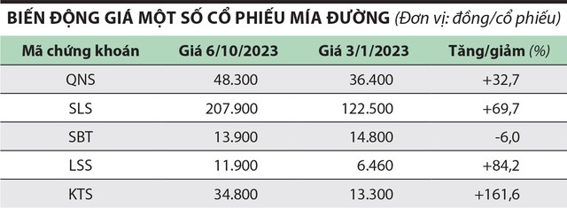 Tương tự, trong 8 tháng đầu năm 2023, Công ty cổ phần Đường Quảng Ngãi (mã chứng khoán QNS) đạt doanh thu 7.200 tỷ đồng, tăng 26% so với cùng kỳ; lợi nhuận trước thuế 1.500 tỷ đồng, tăng 74% so với cùng kỳ; lần lượt hoàn thành 87% và 125% kế hoạch năm 2023.