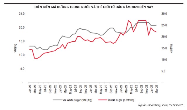 Công ty Chứng khoán SSI cho rằng, trong ngắn hạn, giá đường thế giới không tác động trực tiếp đến giá đường trong nước, do đường nhập khẩu đang được giám sát chặt chẽ và tuân thủ chính sách chống bán phá giá, chống trợ cấp. Trong khi đó, Thái Lan đang phải chịu hạn hán nghiêm trọng, ảnh hưởng đến sản lượng mía đường, dẫn đến việc xuất khẩu đường bị giám sát và suy giảm.