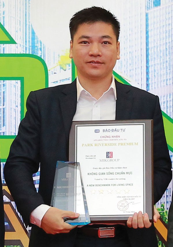 Ông Chu Thanh Hiếu – Phó Tổng giám đốc MIKGROUP nhận Cup vinh danh Dự án Park Riverside Premium