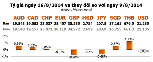 Tuần qua là một tuần tương đối ổn định của thị trường ngoại tệ. Cụ thể, trên thị trường tự do, giá chỉ giảm một lần 10 đồng/USD vào ngày 12/8 rồi không đổi đến hết tuần với 21.190 - 21.210 đồng/USD. Trong khi đó, giá USD do Vietcombank giảm 10 đồng/USD trong ngày đầu tuần, 11/8, xuống 21.180 - 21.230 đồng/USD và duy trì trong 3 ngày sau đó, trước khi giảm thêm 5 đồng/USD vào ngày 15/8.