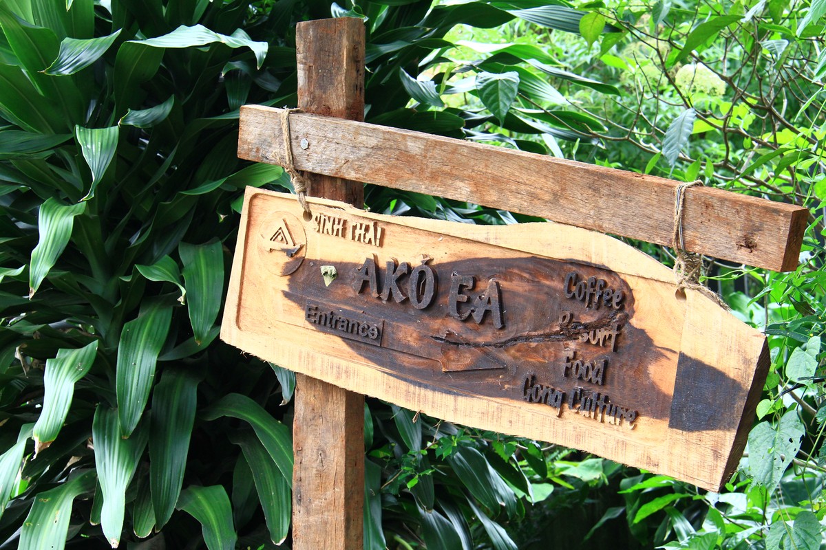 Biển chỉ dẫn tại buôn Ako Dhong. Ảnh: Thành Nguyễn.