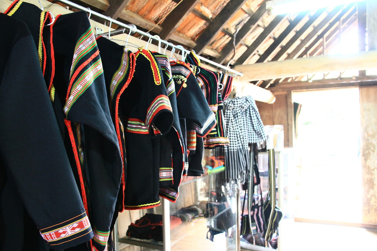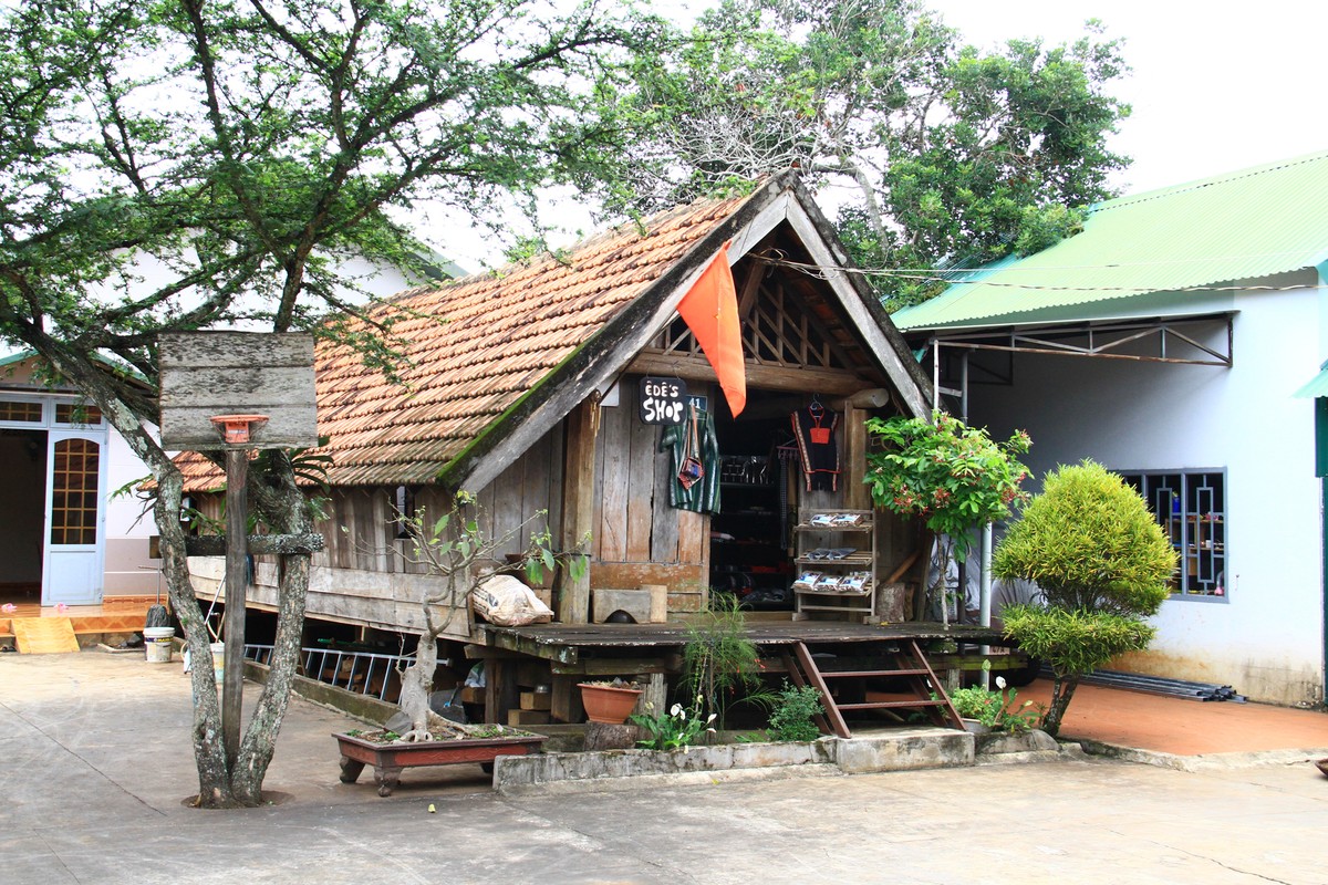 Trong buôn, có những shop bán hàng lưu niệm đậm chất Ê Đê.