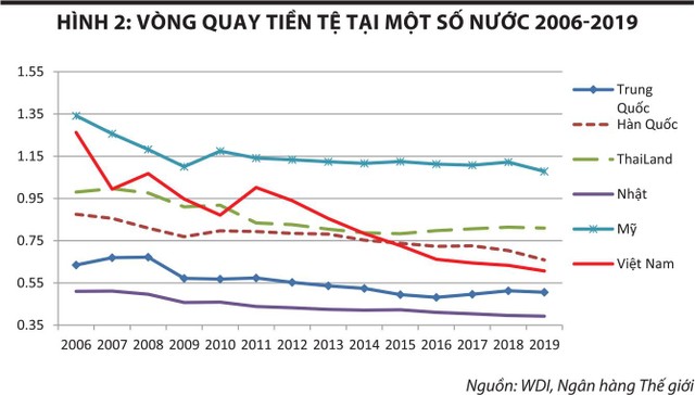 Điều đáng ngạc nhiên đó là vòng quay tiền tệ của hầu hết các nước đều giảm trong hơn 10 năm qua, đặc biệt là tại Việt Nam - vòng quay tiền tệ giảm mạnh nhất. Hiện tượng vòng quay tiền tệ giảm (người dân thích giữ tiền hơn là tiêu dùng) cũng giải thích tại sao cung tiền tăng không tạo ra lạm phát.