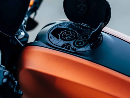 Dưới nắp chiếc bình ở nơi bình xăng thông thường là nơi cắm sạc. Ảnh: HD.