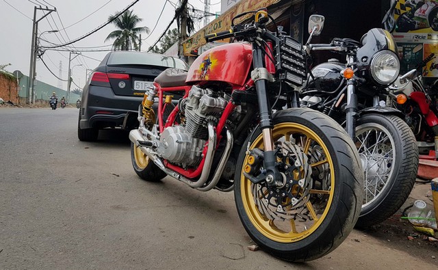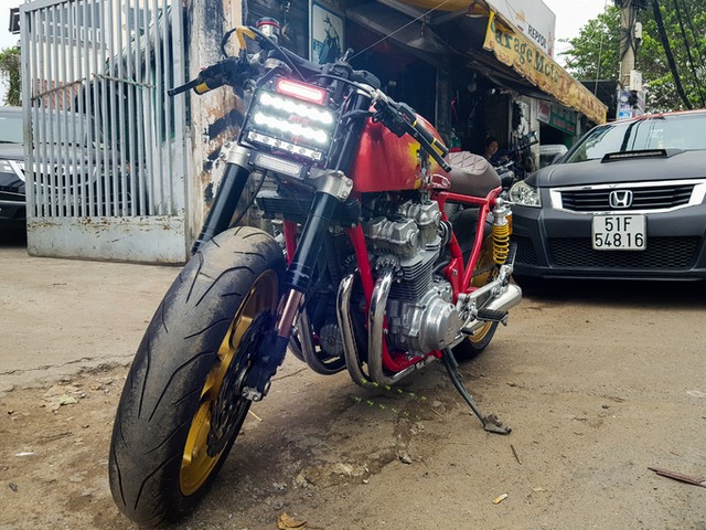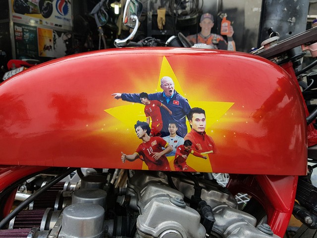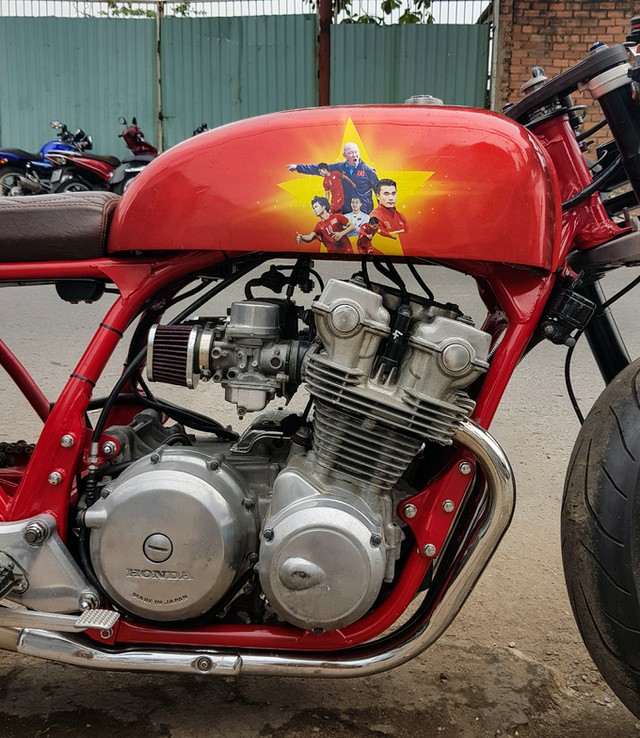 Chiếc Honda CB750F đời 1981 lên dáng cafe racer cùng màu sơn đặc biệt cổ vũ U23.
