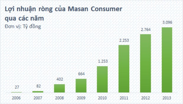 Năm 2013, Masan Consumer đạt 11.900 tỷ đồng doanh thu và 3.100 tỷ đồng lợi nhuận sau thuế. Tại thời điểm cuối năm 2013, Masan Consumer có gần 7.500 tỷ đồng tiền mặt.