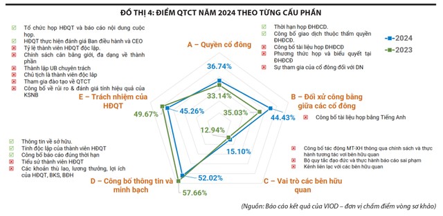 Ngoài ra, việc đảm bảo tỷ lệ thành viên độc lập theo quy định và tính độc lập của thành viên hội đồng quản trị cần chú trọng hơn nữa. Theo kết quả đánh giá VLCA 2024, vẫn còn doanh nghiệp không đảm bảo đủ tỷ lệ hoặc chưa có thành viên hội đồng quản trị độc lập. Vai trò của thành viên hội đồng quản trị độc lập ở một số doanh nghiệp còn chưa đi vào thực chất...