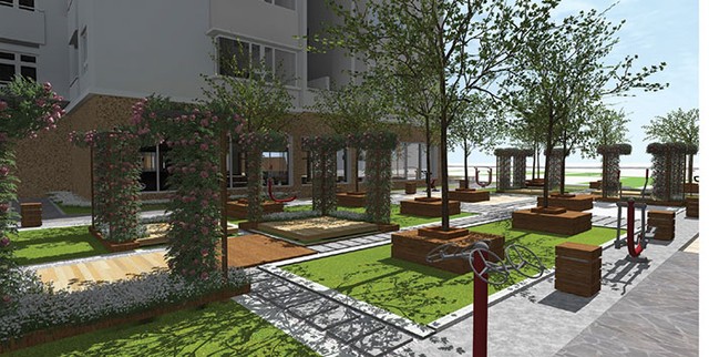 Hai sân chơi và thể thao ngoài trời dành riêng cho thanh thiếu niên với hơn 1.000 m2 với các môn như cầu lông, bóng rổ…và khu vui chơi nhiều sắc màu dành cho trẻ được làm bằng hạt nhựa mềm nên rất an toàn cho trẻ. Ý tưởng tạo ra một vườn cây cho bé trong dự án cũng đặc biệt được đánh giá cao nhờ tính giáo dục và đầy nhân văn.
