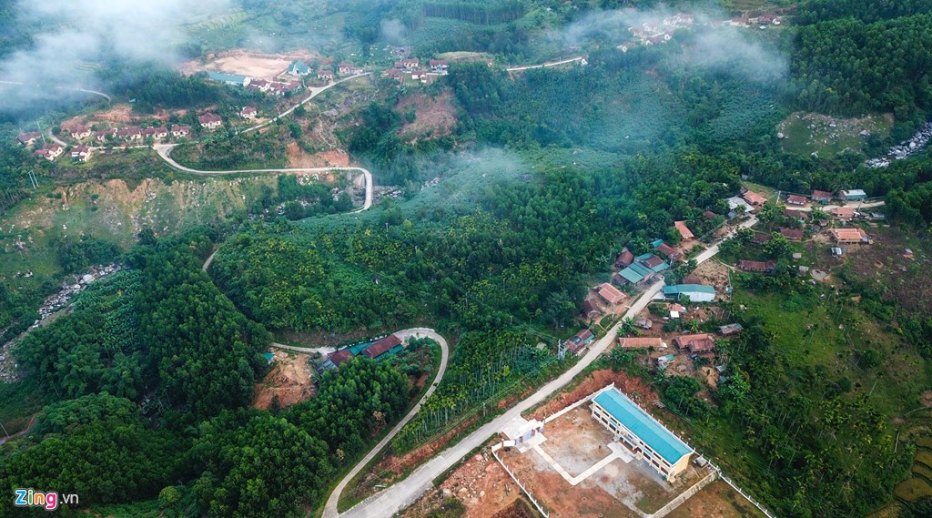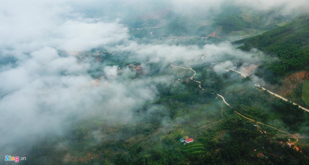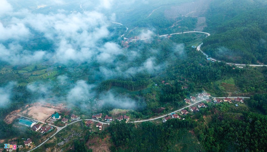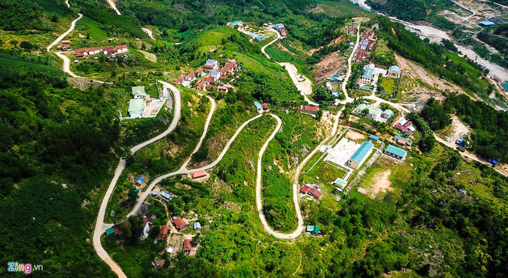 Từ trên cao, những con đường ngoằn ngoèo kết nối các bản làng trông như dải lụa mềm xuyên qua dưới tán rừng.