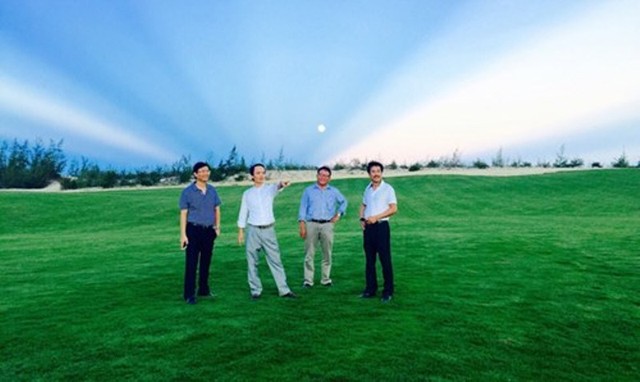 Ông Trịnh Văn Quyết, Chủ tịch HĐQT (thứ hai từ trái sang), ông Lê Thành Vinh, Phó Chủ tịch HĐQT (ngoài cùng bên trái) đi thị sát sân golf ngày 27/9
