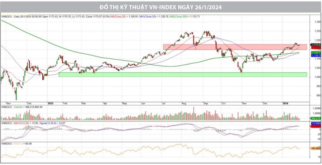 Nhìn chung, VN-Index sau giai đoạn tăng mạnh trong hai tuần đầu năm thì việc điều chỉnh trong tuần qua đi được cho là cần phải có để củng cố lại các ngưỡng hỗ trợ mới được hình thành và đón thêm được dòng tiền tham gia thị trường. Đồng thời, nhịp điều chỉnh này vẫn được đánh giá là lành mạnh khi xu thế tăng ngắn hạn vẫn đang được bảo toàn. Gần về Tết Nguyên đán, chỉ số duy trì, tích lũy, không nhiều đột biến với giao dịch sụt giảm là phù hợp. Do đó, các vị thế đang nắm giữ trong danh mục vẫn có thể tiếp tục duy trì.