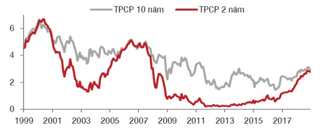 Thị trường chứng khoán Việt Nam diễn biến tiêu cực trở lại trong nhiều phiên gần đây với lo ngại về chiến tranh thương mại, Cục Dự trữ Liên bang Mỹ (Fed) tăng lãi suất lần cuối trong năm 2018, cùng với việc chênh lệch giữa lợi suất trái phiếu chính phủ Mỹ 3 năm và 5 năm lần đầu tiên rớt xuống dưới mức 0 kể từ năm 2007 báo hiệu nỗi lo kinh tế Mỹ giảm tốc. Tuy nhiên, nhà đầu tư cần hiểu sâu bản chất của vấn đề này và liên hệ tới nội tại của nền kinh tế Việt Nam để tìm được cơ hội đầu tư tốt.