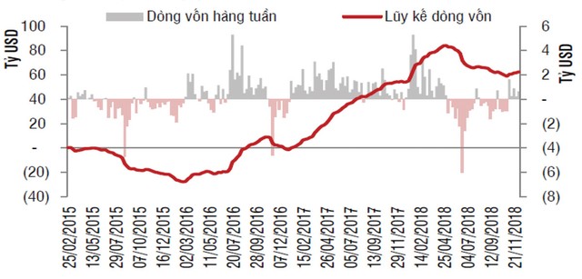 Việc dòng tiền rút ra này là tín hiệu tiêu cực ban đầu đối với các thị trường mới nổi. Hiện lãi suất của Fed đang ở mức 2,25%/năm, tăng 1 điểm phần trăm kể từ đầu năm 2018 và có thể đứng ở mức 2,5% tại thời điểm kết thúc năm 2018. Fed cũng hé lộ có thể sẽ có 3 lần tăng lãi suất trong năm 2019, trong khi các chuyên gia nhận định, năm 2019 có thể có ít hơn 3 lần tăng lãi suất.