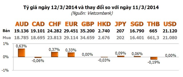 Trong khi đó, giá USD do Vietcombank niêm yết tiếp tục ở mức 21.080 - 21.120 đồng/USD, tăng thời gian giữ ở mức này lên 4 ngày liên tiếp.