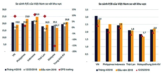 So sánh P/E và P/B của một số thị trường trong khu vực