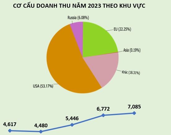 Trong các thị trường chủ lực của TNG, Mỹ chiếm 53,17%, EU chiếm 22,25%, Nga chiếm 6,08%, các thị trường khác chiếm 18,31%.