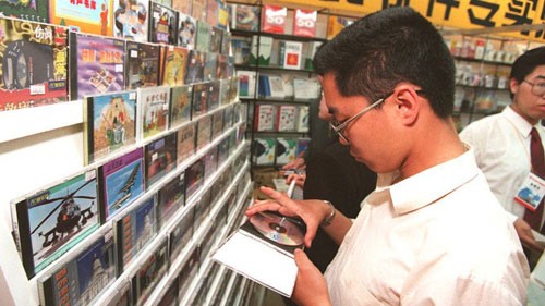 Một khách hàng mua đĩa phần mềm máy tính ở Bắc Kinh, Trung Quốc năm 1996. Ảnh: AFP.