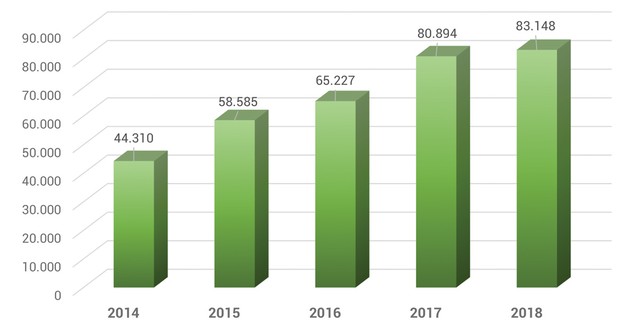 Giá trị phát hành trái phiếu doanh nghiệp giai đoạn 2014 - 2018.